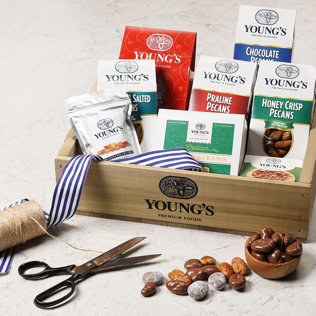 Shop BoxesYoung’s pecan boxes are the perfect size. Available in 14 flavors, find your favorite!